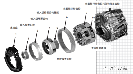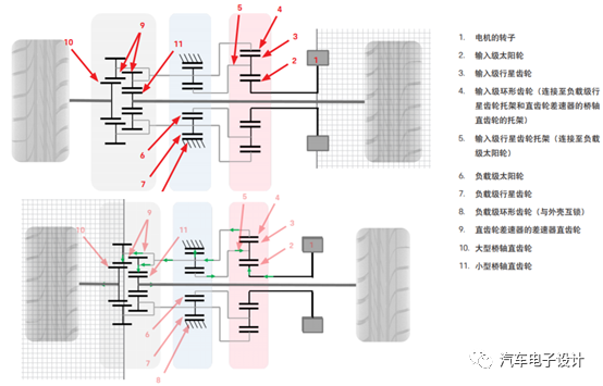 如下图所示,我们可以看清楚传递路径,电机的扭矩=》输入级太阳轮=>